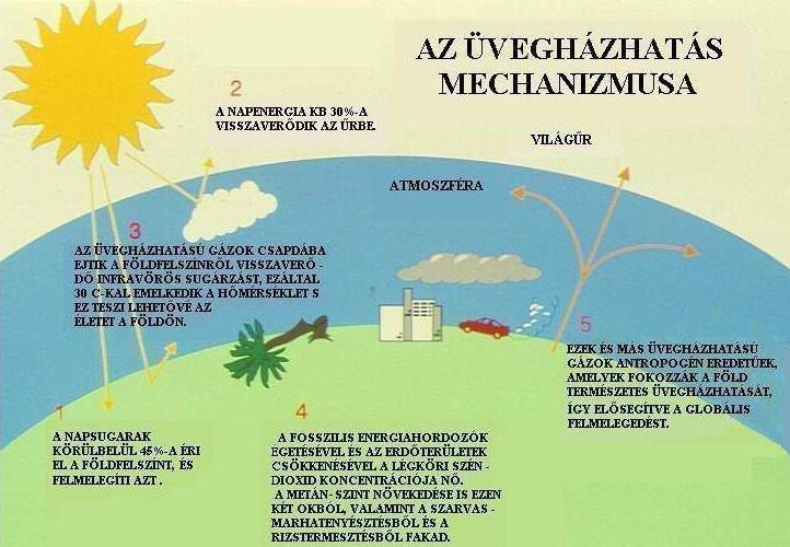 Az üvegházhatás kérdése is nagyon fontos. Mert ha a szén-dioxiddal tönkretesszük az ózonpajzsot, nőhet a rákos megbetegedések száma! Ezen az ábrán jól látható minden, ami fontos az üvegházhatásról.